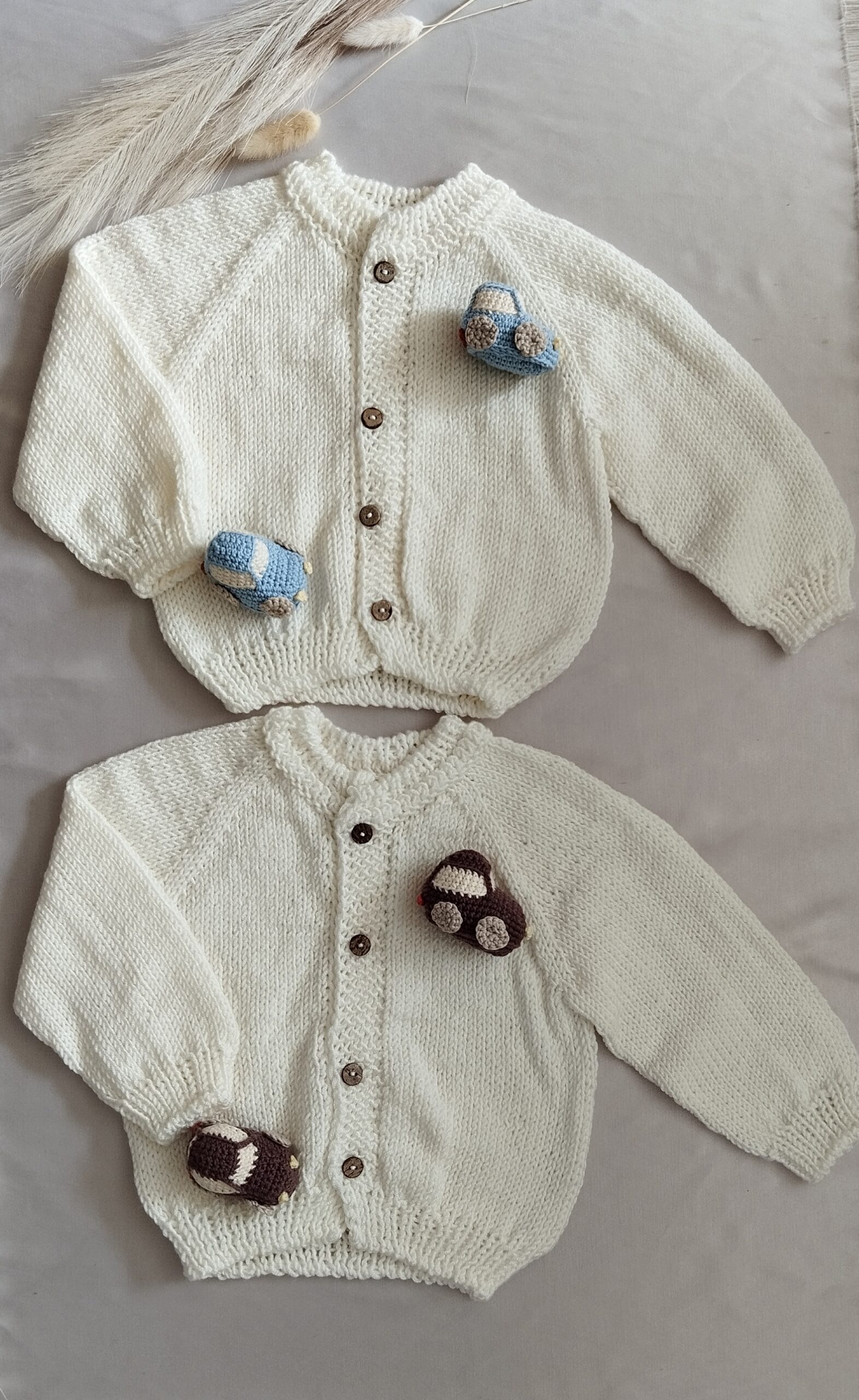Užsegami megztukai su medinėmis sagutėmis ir mielomis nertomis aplikacijomis, sužadins Jūsų mažylio smalsumą ir lavins motorikos įgūdžius.